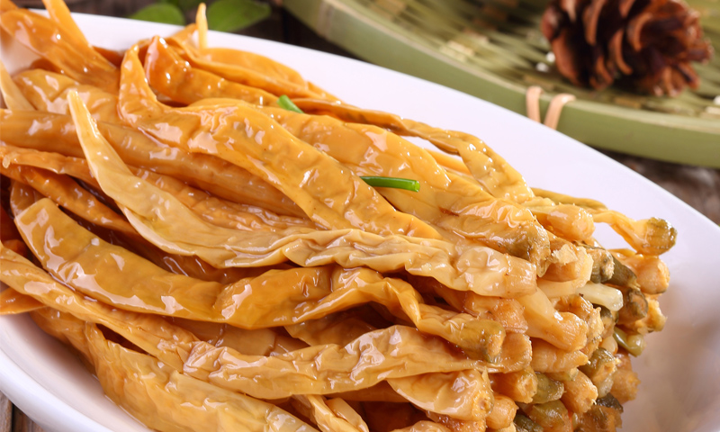 發(fā)酵好的辣椒運到精深加工廠區(qū),清挑、挑選,打包,低溫殺菌。避光冷藏保質(zhì)10個月。開袋可食,烹飪時,可先將辣椒手撕或切片,去鹽,鍋內(nèi)入豬油,炒香豬肉后加入產(chǎn)品、大蒜葉炒制,之后入少許高湯燜至香味四溢,出鍋放點胡椒味更長。